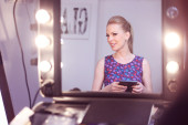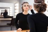 Zdjęcie "Visagist kobieta obejmujące jej oko z różdżką" może być wykorzystywane do celów osobistych i komercyjnych zgodnie z warunkami zakupionej licencji Royalty-free. Obraz jest dostępny do pobrania w jakości wysokiej rozdzielczości do 5760x3840.