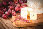Śmierdzący ser pleśniowy na drewnianym stole rustykalny z nożem