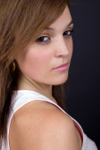 portret młode piękne dziewczyny na tle ściany drewniane