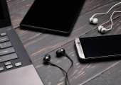Mężczyzna broni wpisując na klawiaturze w naturalne drewniane biurko