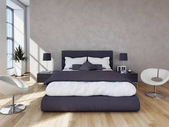 Nowoczesne wnętrza sypialni ściana kolor ciemny, łóżko i