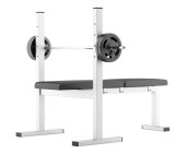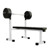 siłowni płaski waga ławki ze sztangą na białym tle