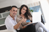 Zdjęcie "radosna para zrelaksować się i pracować na laptopie w nowoczesnym domu" może być wykorzystywane do celów osobistych i komercyjnych zgodnie z warunkami zakupionej licencji Royalty-free. Obraz jest dostępny do pobrania w jakości wysokiej rozdzielczości do 5760x3840.