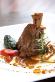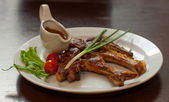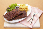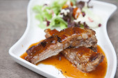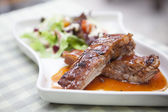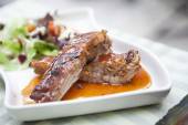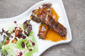 Stos żebro wieprzowe z czerwonym sosem z sałatką