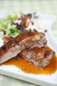Zdjęcie "Stos żebro wieprzowe z czerwonym sosem z sałatką" może być wykorzystywane do celów osobistych i komercyjnych zgodnie z warunkami zakupionej licencji Royalty-free. Obraz jest dostępny do pobrania w jakości wysokiej rozdzielczości do 5760x3840.