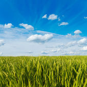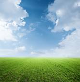 zielone pole z błękitne niebo