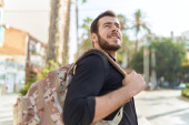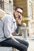 Zdjęcie "Attractive young hipster guy is walking across city" może być wykorzystywane do celów osobistych i komercyjnych zgodnie z warunkami zakupionej licencji Royalty-free. Obraz jest dostępny do pobrania w jakości wysokiej rozdzielczości do 5760x3840.