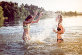 Zdjęcie "Dwie kobiety szczęśliwy zabawa nad jeziorem" może być wykorzystywane do celów osobistych i komercyjnych zgodnie z warunkami zakupionej licencji Royalty-free. Obraz jest dostępny do pobrania w jakości wysokiej rozdzielczości do 5760x3840.
