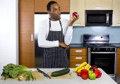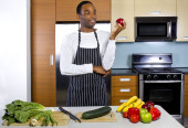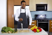 Zdjęcie "człowiek uczy się gotować w domowej kuchni" może być wykorzystywane do celów osobistych i komercyjnych zgodnie z warunkami zakupionej licencji Royalty-free. Obraz jest dostępny do pobrania w jakości wysokiej rozdzielczości do 5760x3840.