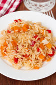 Zdjęcie "Ryż z mięsem i marchew na białym talerzu" może być wykorzystywane do celów osobistych i komercyjnych zgodnie z warunkami zakupionej licencji Royalty-free. Obraz jest dostępny do pobrania w jakości wysokiej rozdzielczości do 5760x3840.
