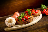 Zdjęcie "Bruschetta zakąska ze świeżych pomidorów" może być wykorzystywane do celów osobistych i komercyjnych zgodnie z warunkami zakupionej licencji Royalty-free. Obraz jest dostępny do pobrania w jakości wysokiej rozdzielczości do 5760x3840.