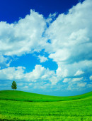 pola i białe chmury
