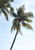 Kokosowe drzewo na błękitnym niebie na południu Tajlandii.