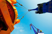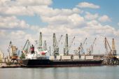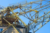 duży port przemysłowy dźwig przed błękitne niebo, białe chmury