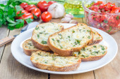 Podejmowania pomidor bruschetta - crostini serowe czosnek i posiekane pomidory z ziołami