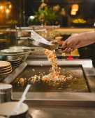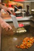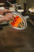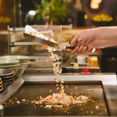 szef kuchni gotowanie ryżu z warzywami i krewetki