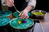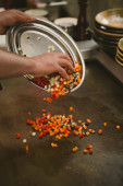 szef kuchni gotowanie ryżu z warzywami i krewetki