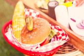 Zdjęcie "Letni piknik, hamburger bliska" może być wykorzystywane do celów osobistych i komercyjnych zgodnie z warunkami zakupionej licencji Royalty-free. Obraz jest dostępny do pobrania w jakości wysokiej rozdzielczości do 5760x3840.