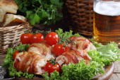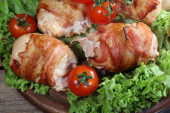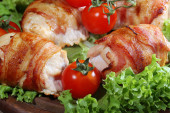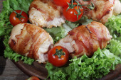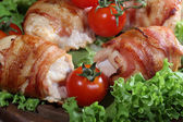 Naganiacze kurczaka w boczku przekazywane na liście sałatka ze świeżych