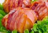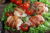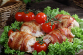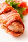 Naganiacze kurczaka w boczku przekazywane na liście sałatka ze świeżych