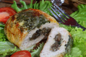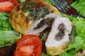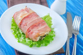 Naganiacze kurczaka w boczku przekazywane na liście sałatka ze świeżych