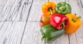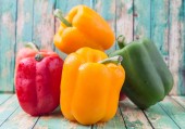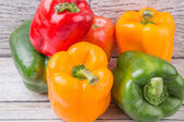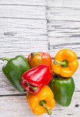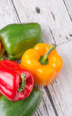 Świeży kolorowe papryki na rustykalne drewniane tła