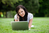 Zdjęcie "Kobieta, leżąc na trawie przy użyciu laptopa" może być wykorzystywane do celów osobistych i komercyjnych zgodnie z warunkami zakupionej licencji Royalty-free. Obraz jest dostępny do pobrania w jakości wysokiej rozdzielczości do 5760x3840.
