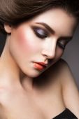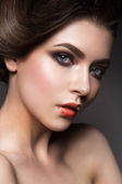 Zbliżenie portret pięknej kobiety z jasnym makijażem