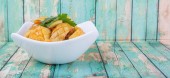 Miskę ghi w misce biały na tle drewniane
