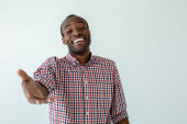 Młody człowiek gestykuluje z uśmiechem, stojąc nad żywym żółtym tłem, promieniując urokiem i przystępnością, pokazując swoją pewność siebie i wciągającą postawę.