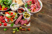 Zdjęcie "Tapas lub antipasto żywności" może być wykorzystywane do celów osobistych i komercyjnych zgodnie z warunkami zakupionej licencji Royalty-free. Obraz jest dostępny do pobrania w jakości wysokiej rozdzielczości do 5760x3840.