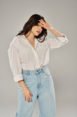 Zdjęcie "Piękna, stylowa kobieta z pewnością pozuje w eleganckim beżowym zespole, prezentując swój modny styl." może być wykorzystywane do celów osobistych i komercyjnych zgodnie z warunkami zakupionej licencji Royalty-free. Obraz jest dostępny do pobrania w jakości wysokiej rozdzielczości do 5760x3840.