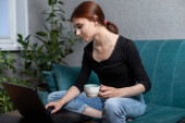 Zdjęcie "Uroczy młody mężczyzna relaksuje się w swoim stylowym mieszkaniu, delektując się ciepłą filiżanką kawy." może być wykorzystywane do celów osobistych i komercyjnych zgodnie z warunkami zakupionej licencji Royalty-free. Obraz jest dostępny do pobrania w jakości wysokiej rozdzielczości do 5760x3840.