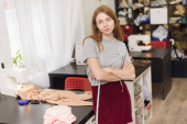 Przystojny młody mężczyzna z długimi rudymi włosami relaksuje się w stylowej bluzie w domu.