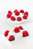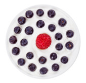 czerwone borówki malin i niebieski w małe okrągłe płytki z kwaśny c