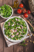 Zdjęcie "Sałatka z serem pleśniowym i sos balsamiczny" może być wykorzystywane do celów osobistych i komercyjnych zgodnie z warunkami zakupionej licencji Royalty-free. Obraz jest dostępny do pobrania w jakości wysokiej rozdzielczości do 5760x3840.