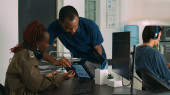 Zdjęcie "Studenci uniwersyteccy uczą się zasad rachunkowości i analizy finansowej dla swoich kursów administracji biznesowej, wykorzystując podręczniki i narzędzia cyfrowe w bibliotece kampusu. Przedsiębiorczość." może być wykorzystywane do celów osobistych i komercyjnych zgodnie z warunkami zakupionej licencji Royalty-free. Obraz jest dostępny do pobrania w jakości wysokiej rozdzielczości do 5760x3840.
