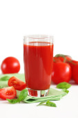 sok z pomidorów i świeżych pomidorów na drewniany stół szczegół