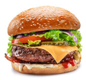 Apetyczny cheeseburger z dwoma pasztecikami na białym tle. Plik zawiera ścieżkę wycinania.