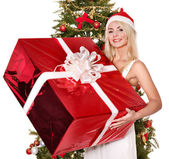 Boże Narodzenie dziewczyna w santa przytrzymanie pudełko.
