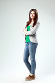 Pełnej długości piękny portret szczęśliwy pięknej kobiety