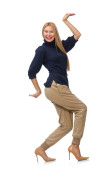 Zdjęcie "Uśmiechnięta młoda kobieta odizolowana na biało" może być wykorzystywane do celów osobistych i komercyjnych zgodnie z warunkami zakupionej licencji Royalty-free. Obraz jest dostępny do pobrania w jakości wysokiej rozdzielczości do 5760x3840.
