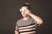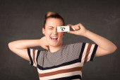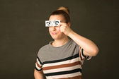 Młoda kobieta z fryzurą i ręcznie rysowane błyskawice