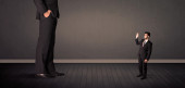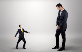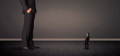 Ogromny człowiek z małym biznesmenem stojącym na czele