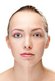 Zdjęcie "kobiety twarz, koncepcja uroda, moc makijaż" może być wykorzystywane do celów osobistych i komercyjnych zgodnie z warunkami zakupionej licencji Royalty-free. Obraz jest dostępny do pobrania w jakości wysokiej rozdzielczości do 5760x3840.