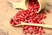 czerwona fasola na tle drewno suszone