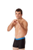 Zdjęcie "lekkoatletycznego młody człowiek. łapka na biały." może być wykorzystywane do celów osobistych i komercyjnych zgodnie z warunkami zakupionej licencji Royalty-free. Obraz jest dostępny do pobrania w jakości wysokiej rozdzielczości do 5760x3840.