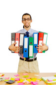 biznesmen z wielu folderów w biały
