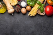 Zdjęcie "Składniki gotowania makaronu i naczynia na stół" może być wykorzystywane do celów osobistych i komercyjnych zgodnie z warunkami zakupionej licencji Royalty-free. Obraz jest dostępny do pobrania w jakości wysokiej rozdzielczości do 5760x3840.