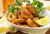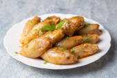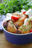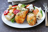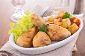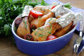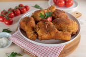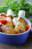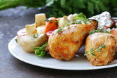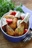 Smażone udka z ziół i przypraw, warzyw do dekoracji